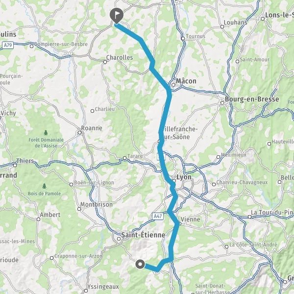 Prendre à droite et rejoindre A7. Continuer sur 46 kilomètres