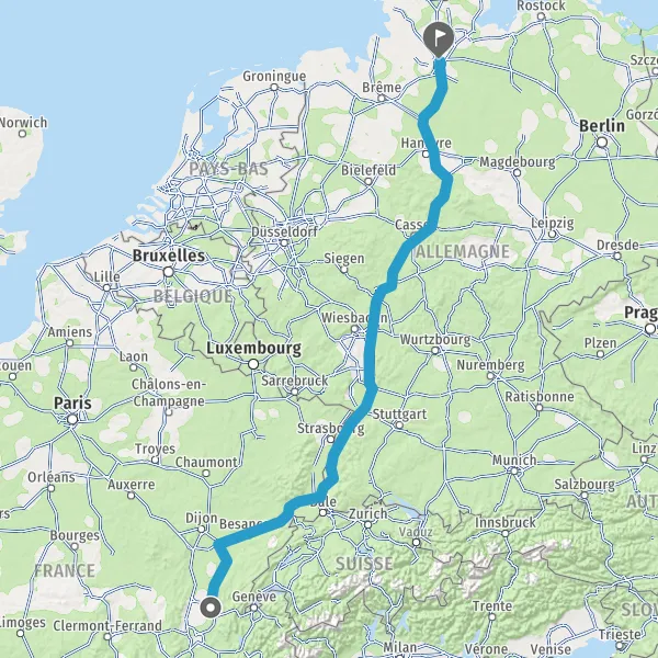 Prendre à droite et rejoindre A36 E60. Continuer sur 125 kilomètres