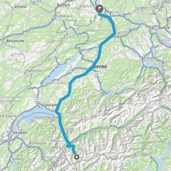 Au rond-point, prendre la 2ème sortie sur 21 E27 (Route du Grand-Saint-Bernard) et continuer sur 8,7 kilomètres