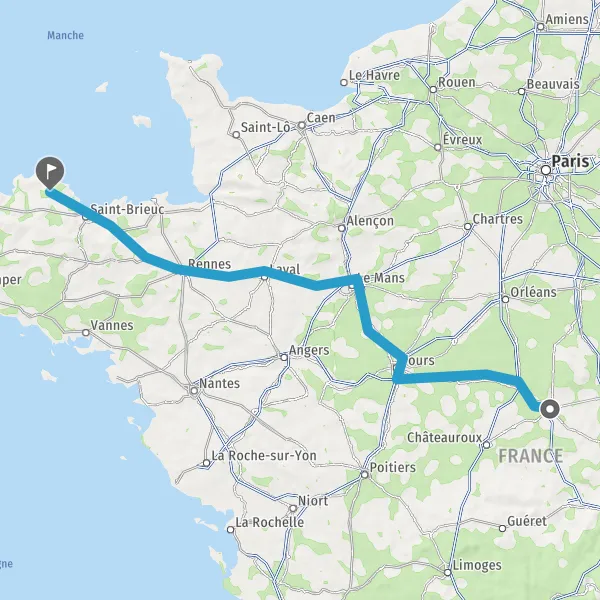 Prendre à droite et rejoindre A85 E604. Continuer sur 105 kilomètres