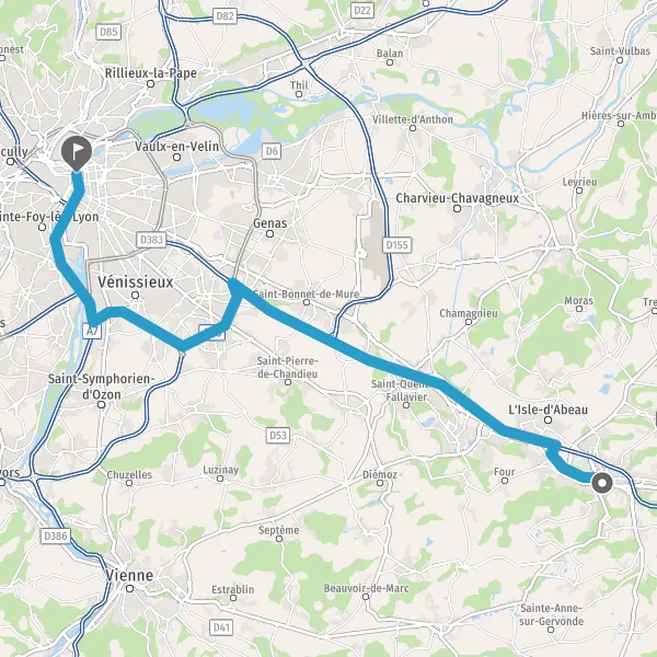 Continuer et rejoindre D383 (Boulevard Laurent Bonnevay). Continuer sur 6,3 kilomètres