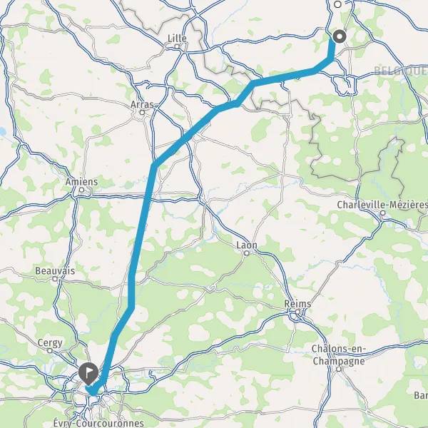 Continuer A1 A1 E19 E15 sur 120 kilomètres