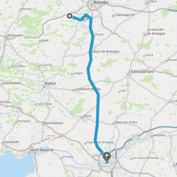 Tourner à droite sur D36 (Rue de Bruz) et continuer sur 210 mètres