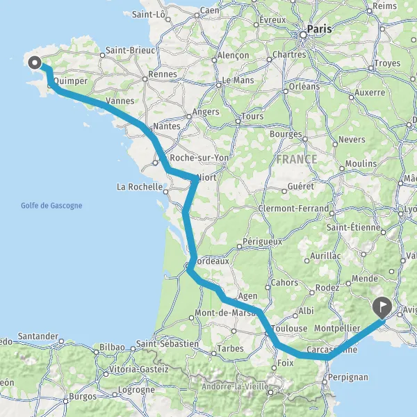 Au rond-point, prendre la 2ème sortie sur D165 (Route du Vieux Saint-Marc) et continuer sur 280 kilomètres