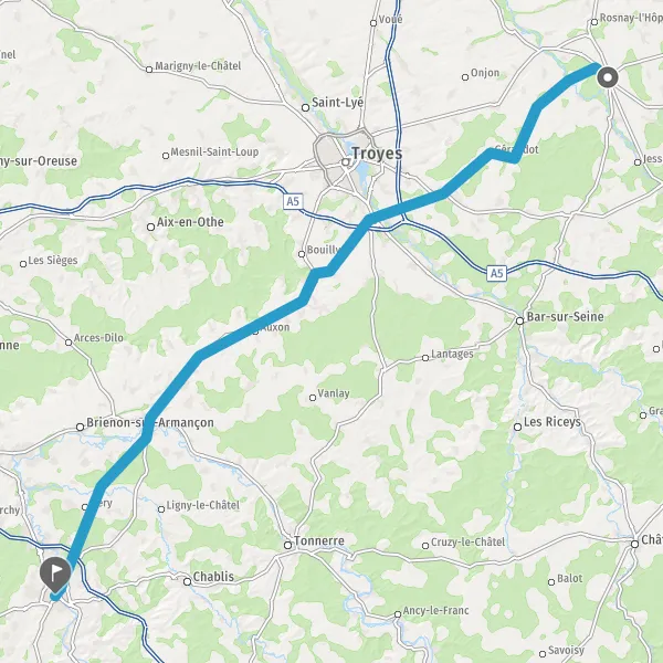 Au rond-point, prendre la 3ème sortie sur D444 (Route Chaource) et continuer sur 400 mètres