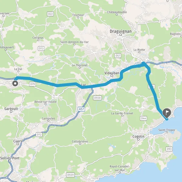 Tourner à droite sur D125 (Route de Sainte-Maxime) et continuer sur 17 kilomètres