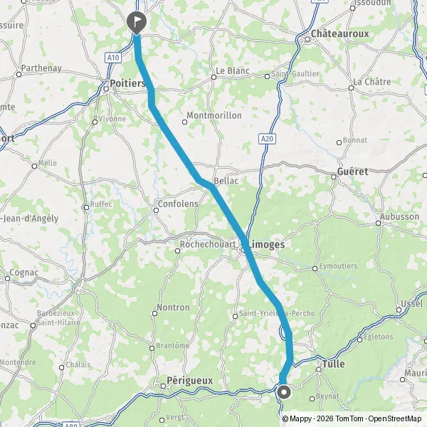 Prendre à droite et rejoindre A20 E9 E70. Continuer sur 17 kilomètres