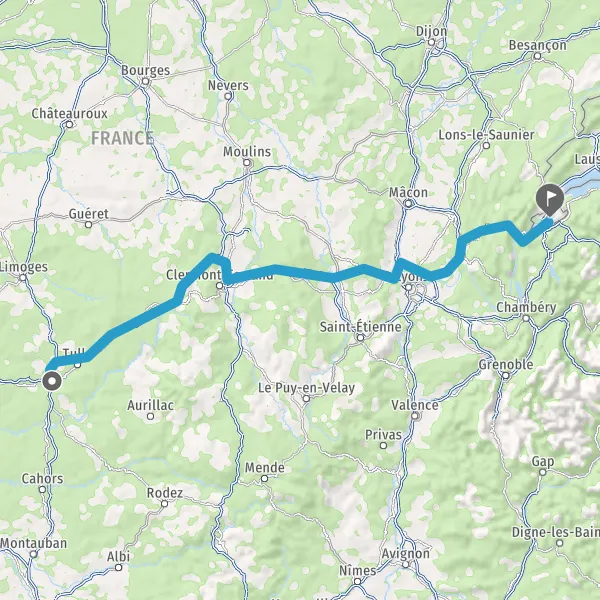 Prendre à droite et rejoindre A89 E70. Continuer sur 84 kilomètres