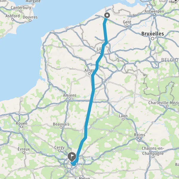 Continuer E17 (Autoroute du Nord) sur 173 kilomètres