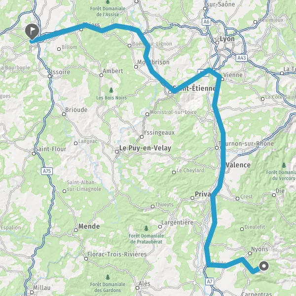 Prendre à droite et rejoindre A72. Continuer sur 53 kilomètres