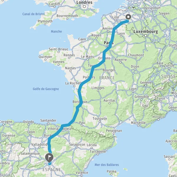 | Distance en bus | 1585 km Ă 1598 km |