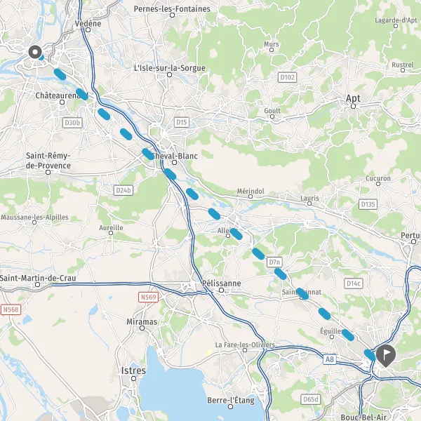 Venir à Aix en Provence. En voiture : A8, la Provençale axe Cannes (153 km), Nice (176 km) et Menton – frontière Italienne (208 km). A51, autoroute du Val de Durance axe Marseille (32 km) et Sisteron – en direction des Alpes (103 km). Connexion avec A7 / A6, autoroute du Soleil axe Avignon ( 88 km), Lyon ( 297 km) et Paris (759 km), A52 / A50 axe Aubagne (35 km), Toulon (84 km), A54 axe Arles (75 km), Nîmes (105 km) et Montpellier (154 km). En covoiturage : L’Automobile Club d’Aix-en-Provence et du Pays d’Aix propose une plateforme virtuelle de rencontre pour faciliter les déplacements. En train : A 3 heures de Paris et un peu plus d'une 1 heure de Lyon, Aix-en-Provence est connectée à la France entière grâce au TGV Méditerranée ainsi qu'à l'Europe. La ville dispose également d'une gare en centre ville qui dessert Marseille, Gardanne, Manosque, Sisteron. En autocar : la gare routière se trouve à proximité de la gare ferroviaire et à moins de 500 m du centre ville.