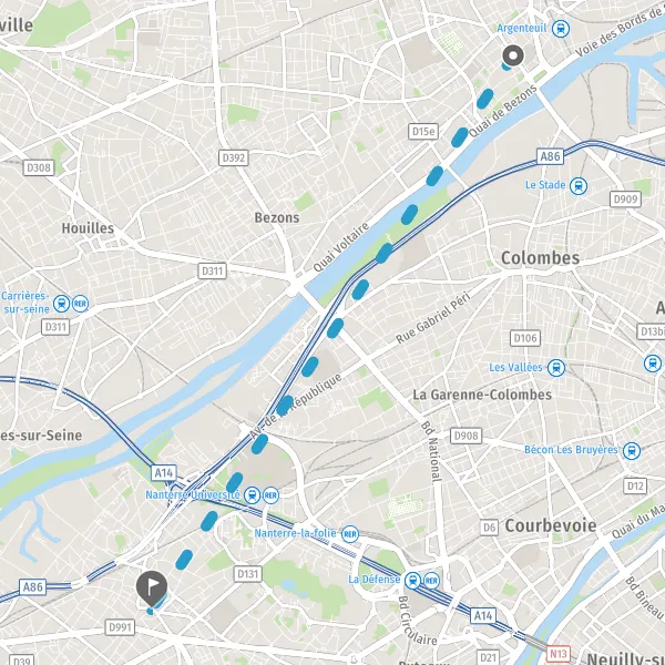 Ne perdez plus votre temps à chercher un bus pas cher, Mappy vous permet de comparer tous les prix et les horaires pour réserver votre autocar de Argenteuil à Nanterre avec nos partenaires : blablabus, Flixbus... Comparez votre trajet Argenteuil Nanterre en autocar, entre différentes lignes ou avec les autres modes de transports, et calculez ainsi les économies de temps ou de coût réalisées.