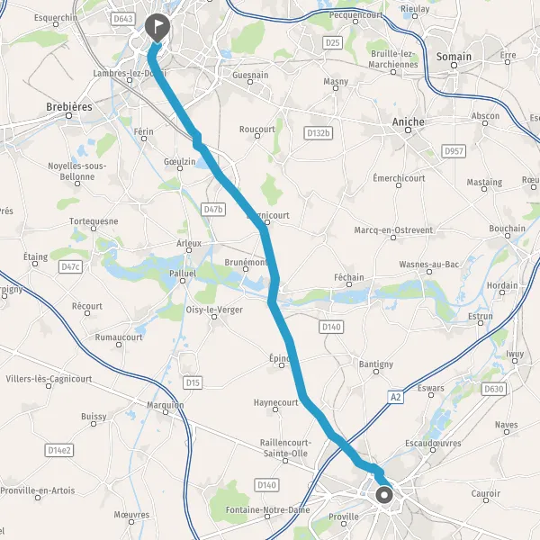 Au rond-point, prendre la 2ème sortie sur D2643 (Route de Douai) et continuer sur 1 kilomètre