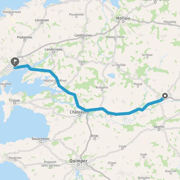 Prendre à droite et rejoindre N164 (Route de Carhaix). Continuer sur 36 kilomètres
