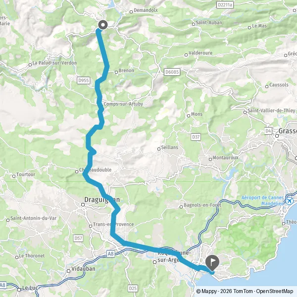 Au rond-point, prendre la 3ème sortie sur DN7 (Route de Fréjus) et continuer sur 4,6 kilomètres