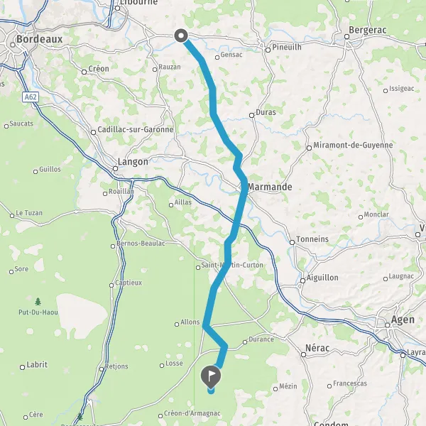 Tourner à droite sur D708 (Route de Duras) et continuer sur 3,9 kilomètres