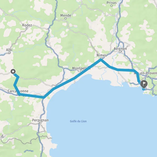 Tourner légèrement à gauche sur D118 (Route de Carcassonne) et continuer sur 36 kilomètres