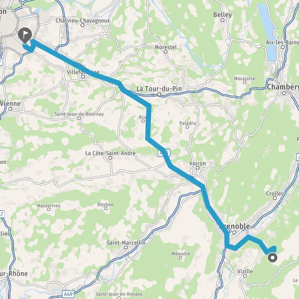 Prendre à droite et rejoindre A43 E711 E70. Continuer sur 34 kilomètres