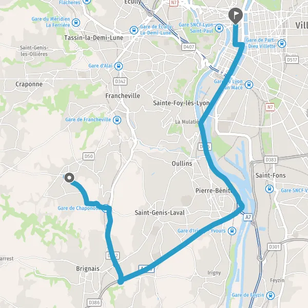 Ne perdez plus votre temps à chercher votre billet pas cher ou votre trajet le plus rapide ou avec le moins de km, Mappy vous permet de comparer tous les modes de transport et tous les horaires pour votre itinéraire de Chaponost à Lyon.