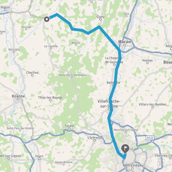 Trajet de Charolles (71120) à Lyon (69000) en voiture
