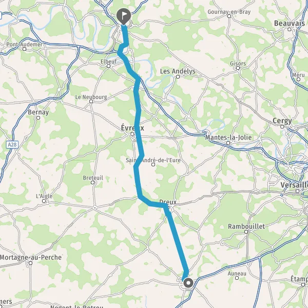 Prendre à droite et rejoindre N154. Continuer sur 28 kilomètres