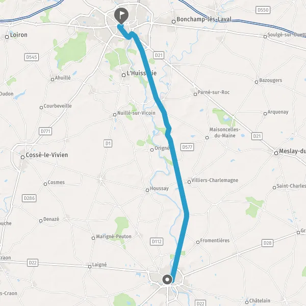 Au rond-point, prendre la 2ème sortie sur Route de Mayenne et continuer sur 600 mètres