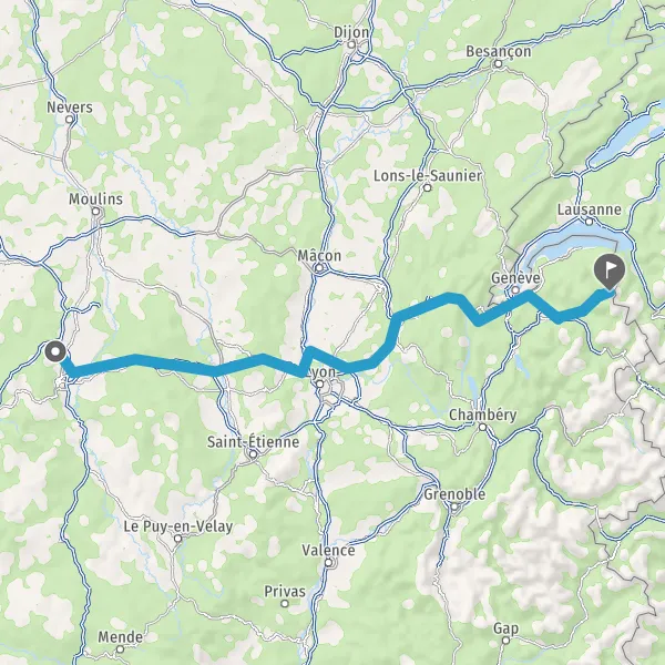 Prendre à droite et rejoindre A89 E70. Continuer sur 84 kilomètres