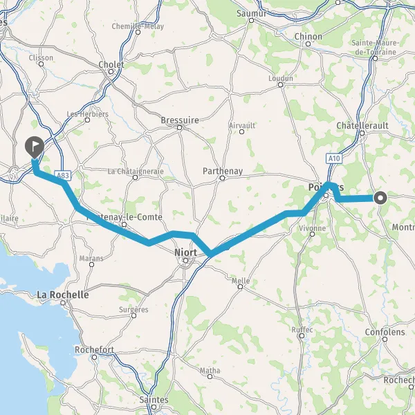 Prendre à droite et rejoindre A83. Continuer sur 80 kilomètres