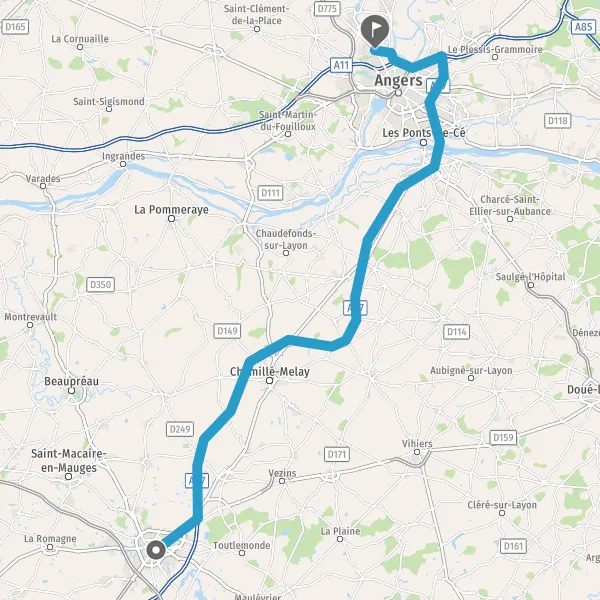 Au rond-point, prendre la 3ème sortie sur A87 et continuer sur 750 mètres