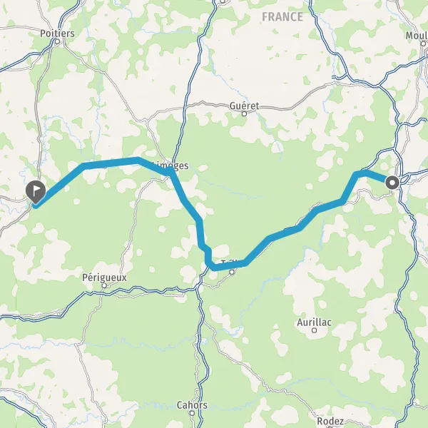 Trajet de Clermont-Ferrand (63000) à Angoulême (16000) en voiture