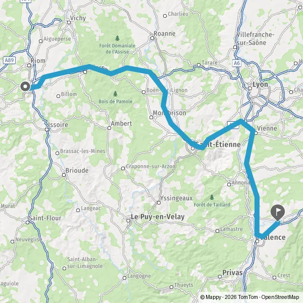 Continuer A89 E70 sur 77 kilomètres