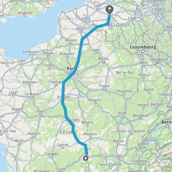 Itinéraire en voiture de Clermont-Ferrand 63000-63100 à 1000-1130 Bruxelles Région de Bruxelles-Capitale (Belgique)
