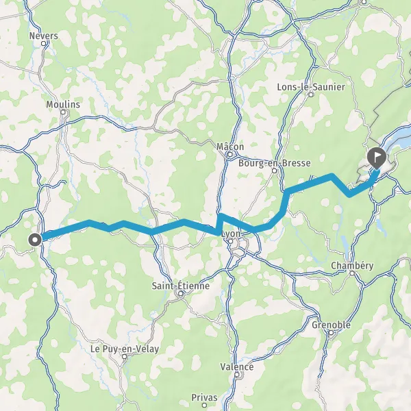 Prendre à droite et rejoindre A42. Continuer sur 40 kilomètres
