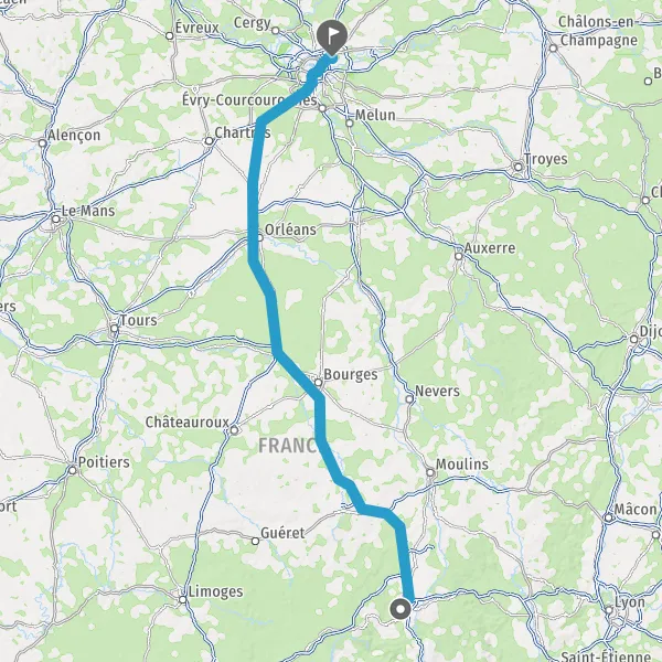 Prendre à droite et rejoindre A89 A71 E11 E70. Continuer sur 285 kilomètres