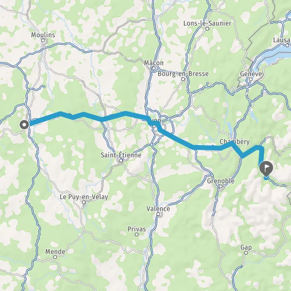Prendre à droite et rejoindre A43 E70. Continuer sur 38 kilomètres