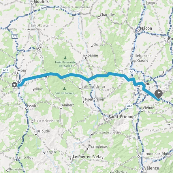 Continuer A89 E70 sur 77 kilomètres