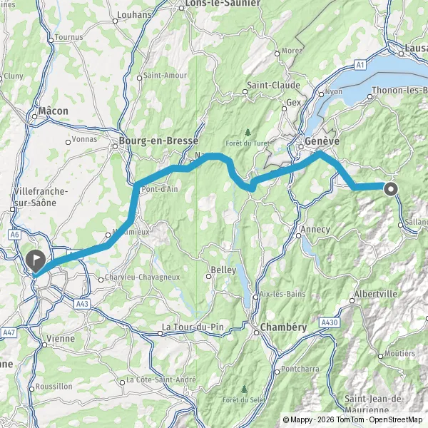 Avec le mode voiture, vous pouvez configurer vos options (type de véhicule, autoroute ou non, péage ou non, distance la plus courte), tout en ayant accès aux infos de circulation grâce à notre service d'info-trafic en temps réel. Ainsi faites des économies sur le coût ou la durée de votre voyage, en trouvant le trajet Cluses Lyon adapté à vos besoins.