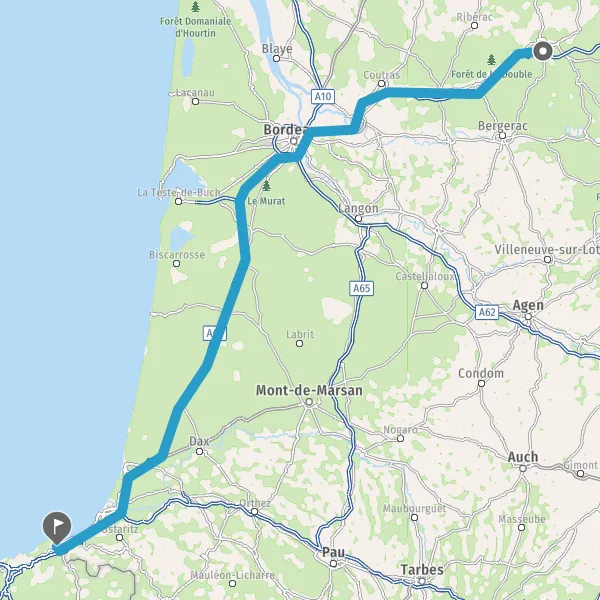 Prendre à droite et rejoindre A63. Continuer sur 22 kilomètres