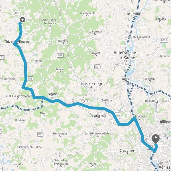 Continuer Rue de Thizy sur 1,8 kilomètre