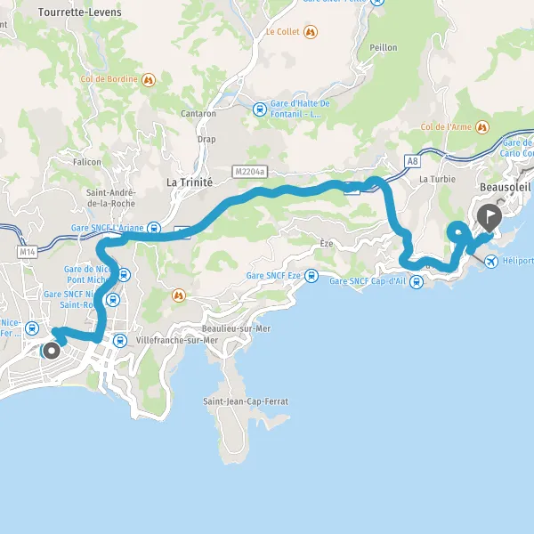 comment aller de Nice (06000) et Monaco (98000) en voiture en fonction de votre point de départ et de l'heure d'arrivée souhaitée. Mappy propose aussi d'autres moyens de transports comme le vélo, la voiture, le train, le bus longue distance, le mode piéton, les transports en commun, la trottinette ou le taxi/VTC. A vous de choisir le meilleur mode de transport en fonction de la distance à parcourir.