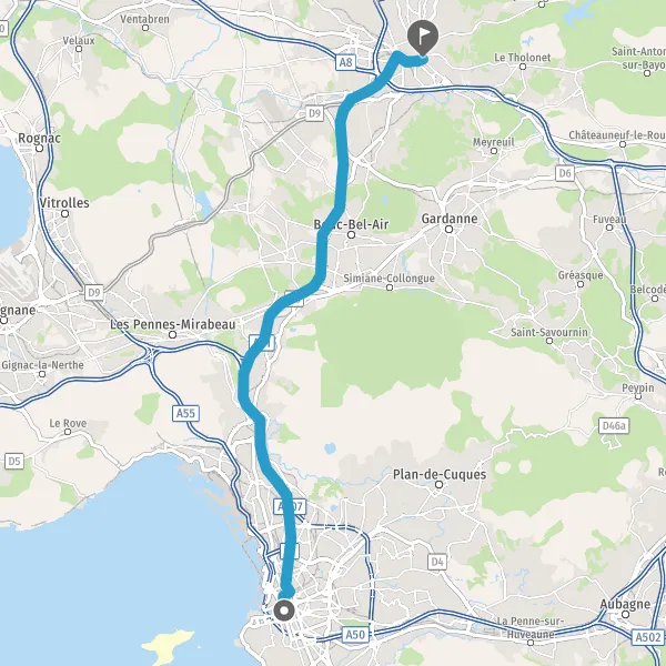 Venir à Aix en Provence. En voiture : A8, la Provençale axe Cannes (153 km), Nice (176 km) et Menton – frontière Italienne (208 km). A51, autoroute du Val de Durance axe Marseille (32 km) et Sisteron – en direction des Alpes (103 km). Connexion avec A7 / A6, autoroute du Soleil axe Avignon ( 88 km), Lyon ( 297 km) et Paris (759 km), A52 / A50 axe Aubagne (35 km), Toulon (84 km), A54 axe Arles (75 km), Nîmes (105 km) et Montpellier (154 km). En covoiturage : L’Automobile Club d’Aix-en-Provence et du Pays d’Aix propose une plateforme virtuelle de rencontre pour faciliter les déplacements. En train : A 3 heures de Paris et un peu plus d'une 1 heure de Lyon, Aix-en-Provence est connectée à la France entière grâce au TGV Méditerranée ainsi qu'à l'Europe. La ville dispose également d'une gare en centre ville qui dessert Marseille, Gardanne, Manosque, Sisteron. En autocar : la gare routière se trouve à proximité de la gare ferroviaire et à moins de 500 m du centre ville.