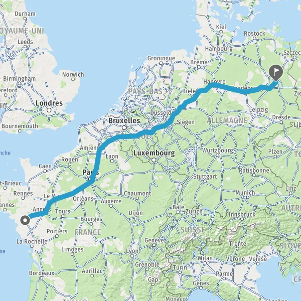 comment aller de Nantes (44000) et Berlin (10115) en voiture en fonction de votre point de départ et de l'heure d'arrivée souhaitée. Mappy propose aussi d'autres moyens de transports comme le vélo, la voiture, le train, le bus longue distance, le mode piéton, les transports en commun, la trottinette ou le taxi/VTC. A vous de choisir le meilleur mode de transport en fonction de la distance à parcourir.