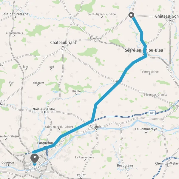 Au rond-point, prendre la 2ème sortie sur D771 (Rue de Pouancé) et continuer sur 8,3 kilomètres