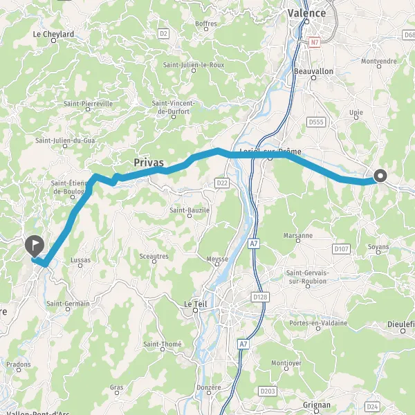 Tourner légèrement à droite sur D104 (Route de Privas) et continuer sur 6,1 kilomètres
