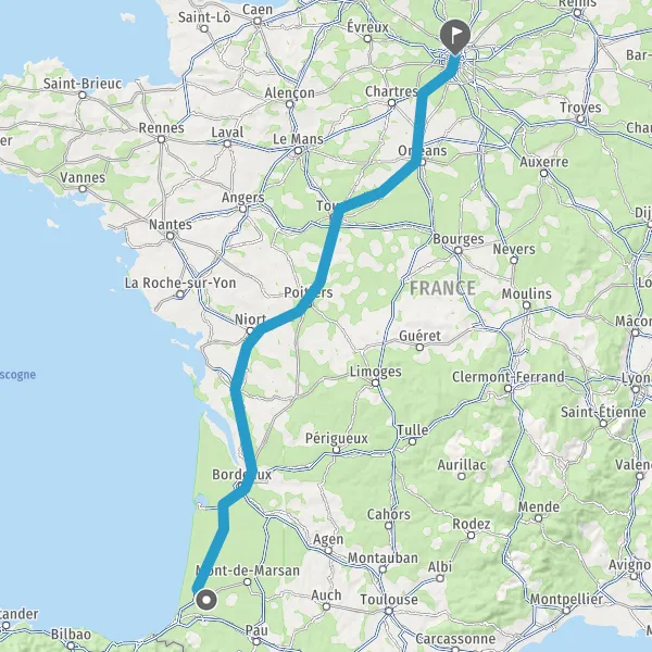 Prendre à droite et rejoindre A63 E5 E70. Continuer sur 130 kilomètres