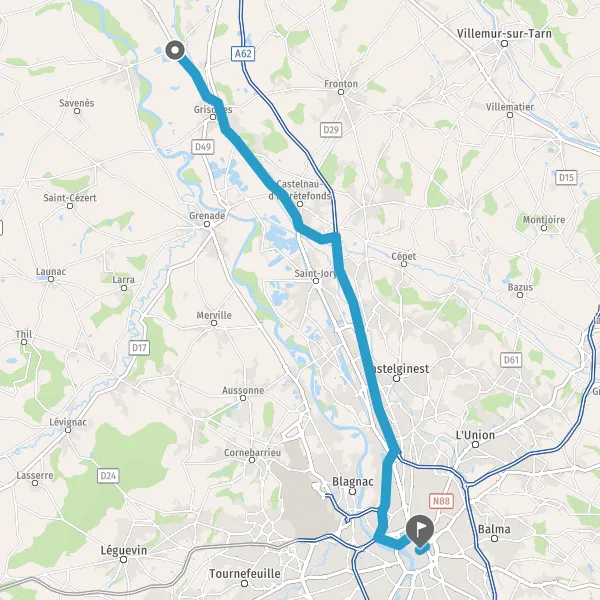 Prendre D813 (Route de Toulouse) et continuer sur 2,2 kilomètres