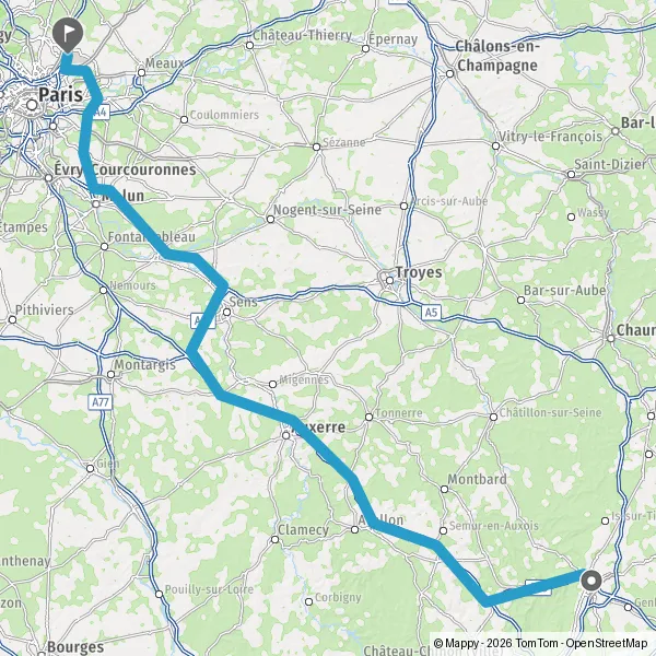 Prendre à gauche et rejoindre A6. Continuer sur 254 kilomètres