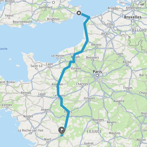Prendre à droite et rejoindre A10. Continuer sur 34 kilomètres