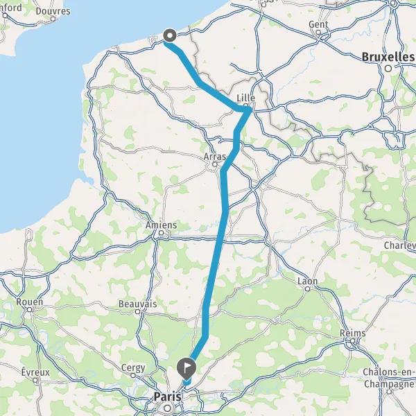 Continuer E17 (Autoroute du Nord) sur 168 kilomètres